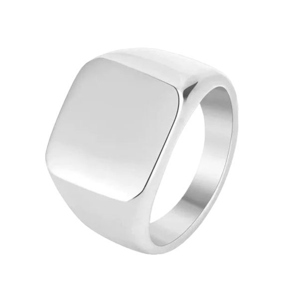anillo de acero quirúrgico brillante diseño sello cuadrado de 17 x 17 mm. existen medidas disponibles.