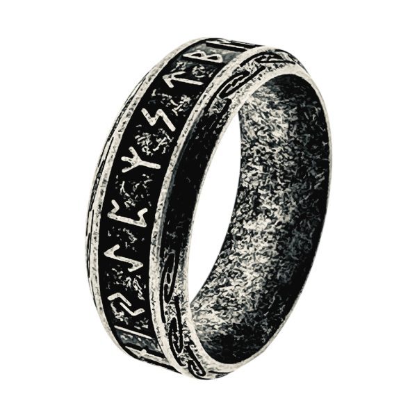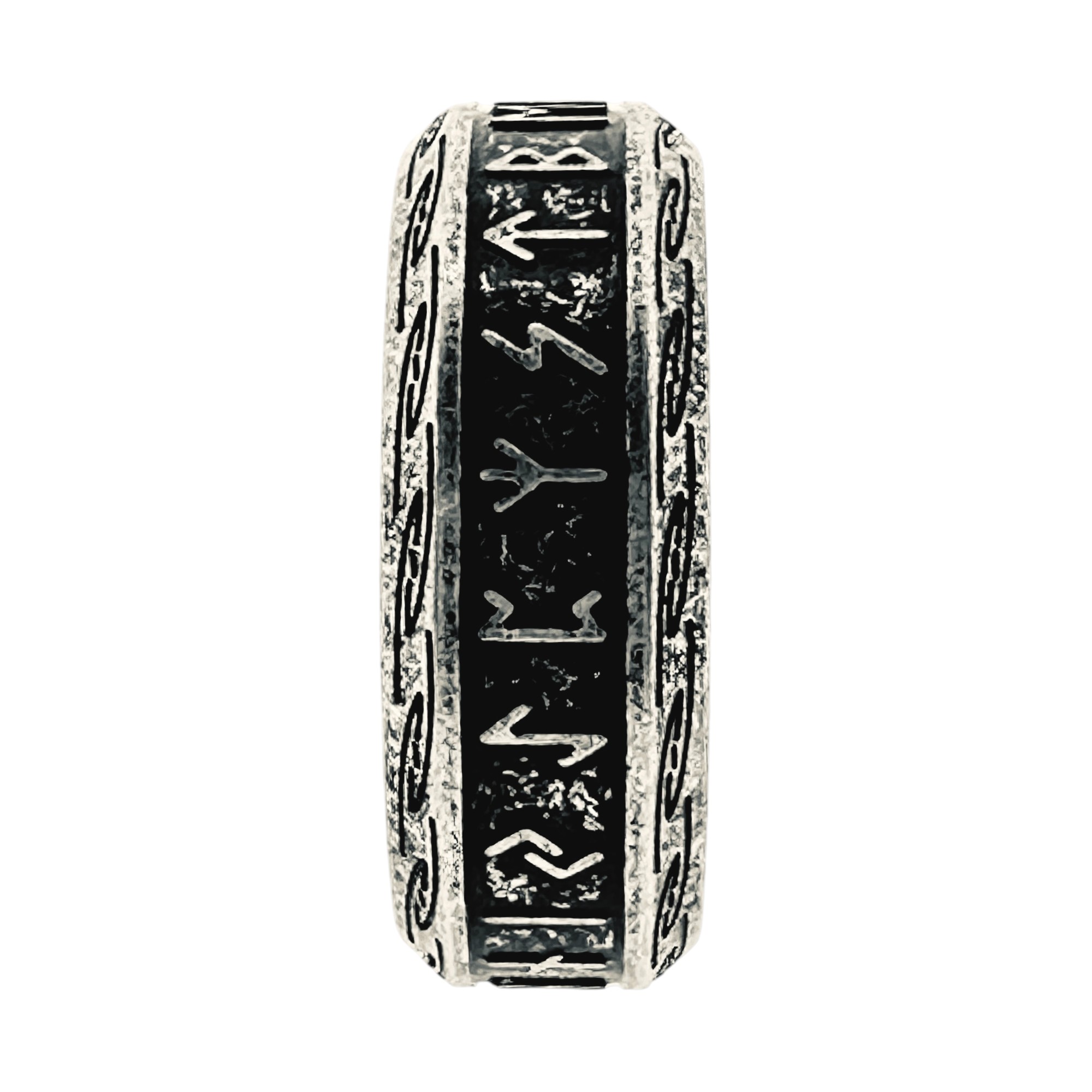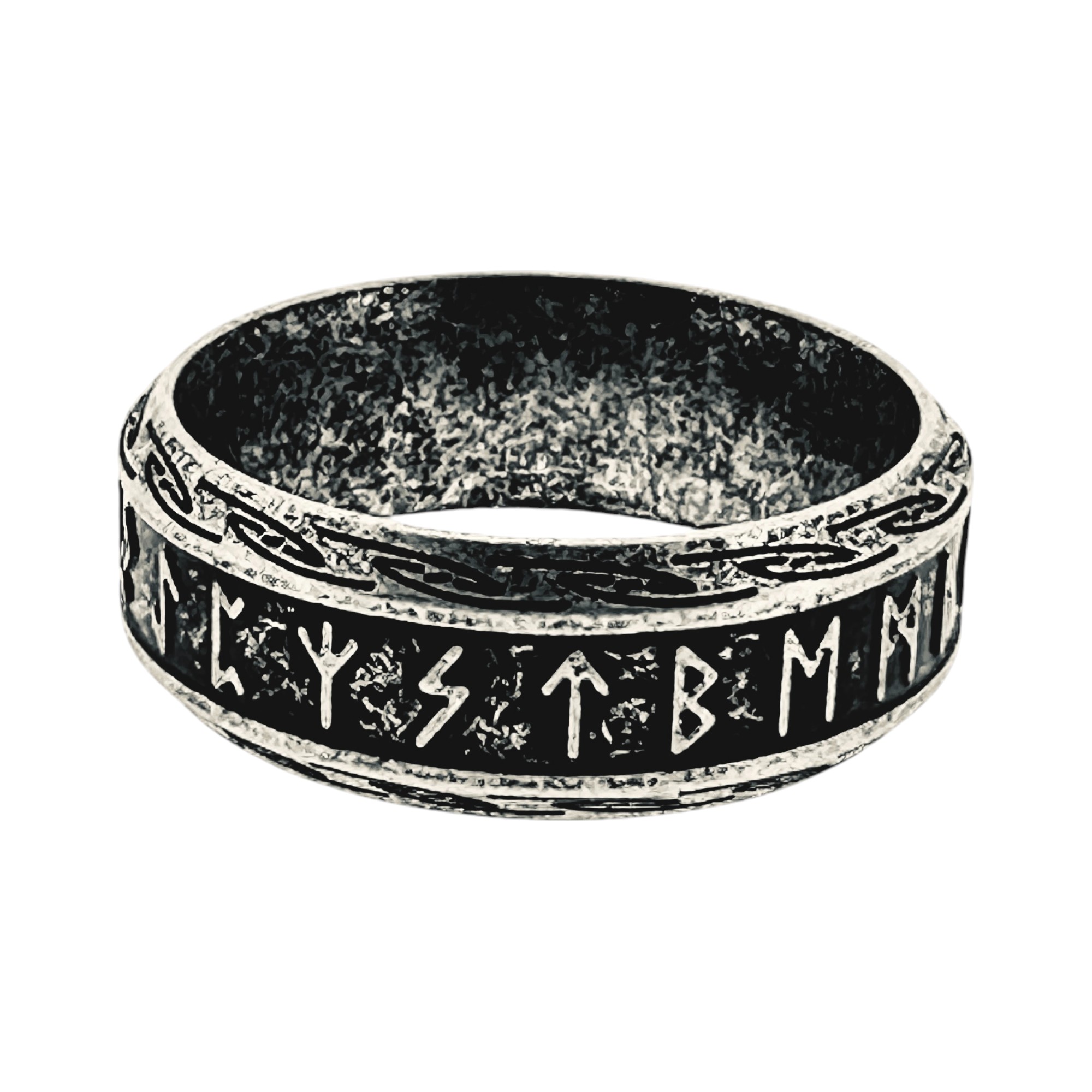 anillo de acero quirurgico diseño runas vikingas en el centro del anillo.  el ancho del anillo es de 8.0mm. existen varias medidas disponibles.
