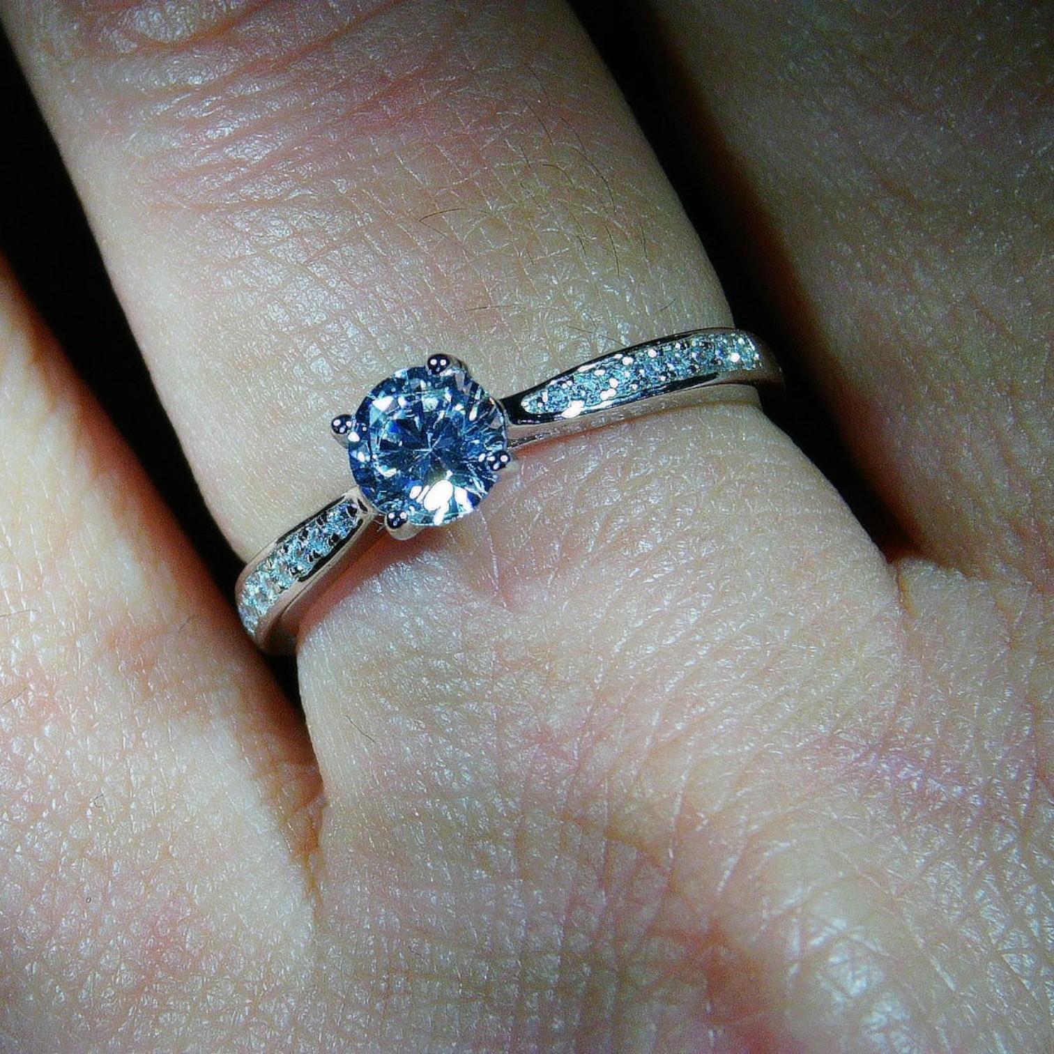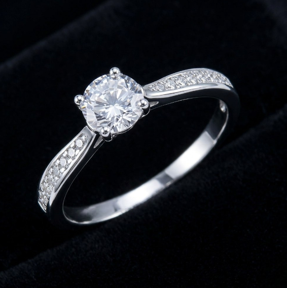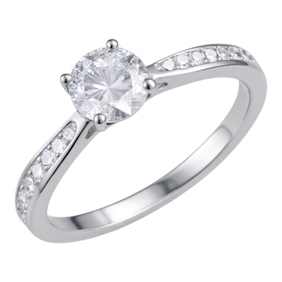 Anillo de plata con circon redondo engarzado de 5.0mm y 16 microcircones