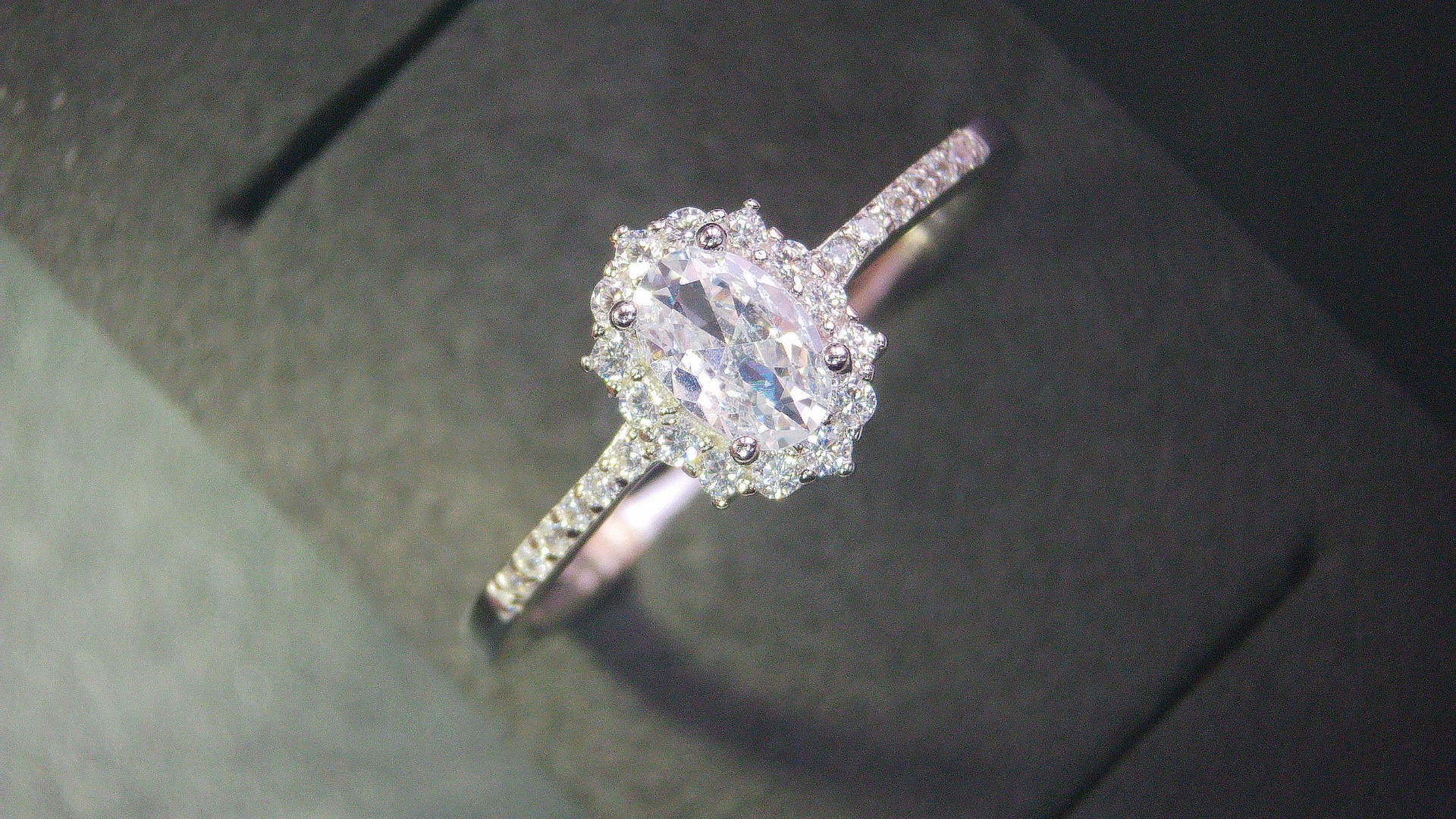 anillo de plata rodinada con circones full engarzados diseño ovalado de 7x9mm.  tienes 5 números para elegir. ¡producto exclusivo!