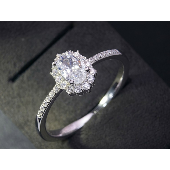 Anillo de plata con circones full engarzados diseño ovalado de 7x9mm