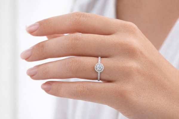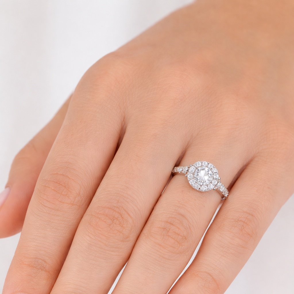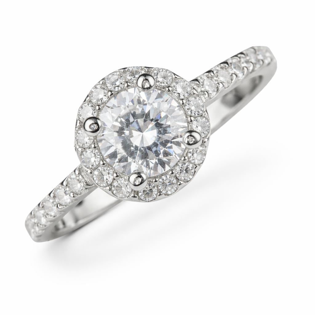 Anillo de plata con medio cintillo y circones full engarzados y central redondo de 5.0mm