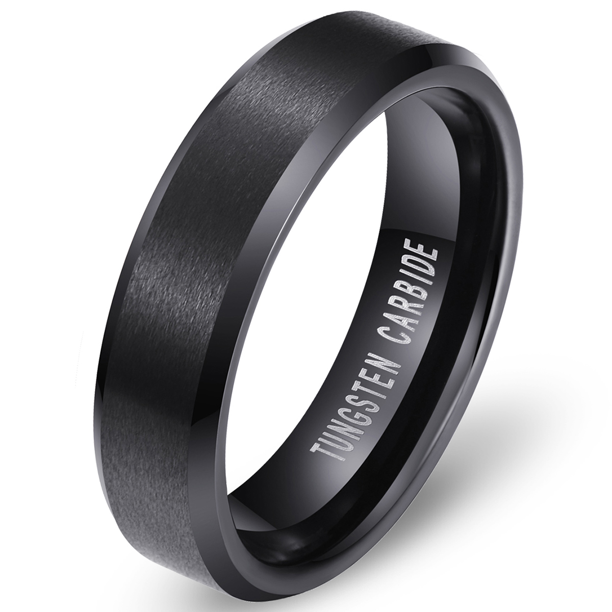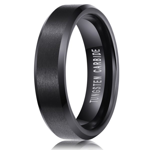Joyas Anillo de tungsteno negro mate y brillante lateral de 4.0mm...