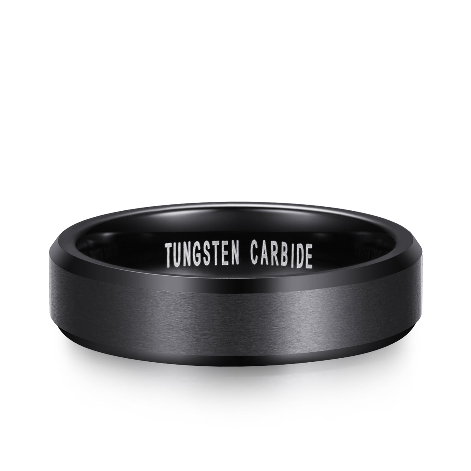 anillo de tungsteno negro mate y brillante lateral. tiene un ionizado negro que se mantiene en el tiempo y con un grosor de 4.0mm. el tungsteno es el metal más duro y resistente que existe.