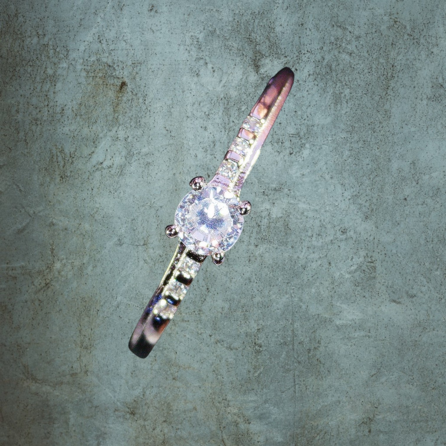 Anillo de plata con circon redondo engarzado de 4.0mm y 6 microcircones