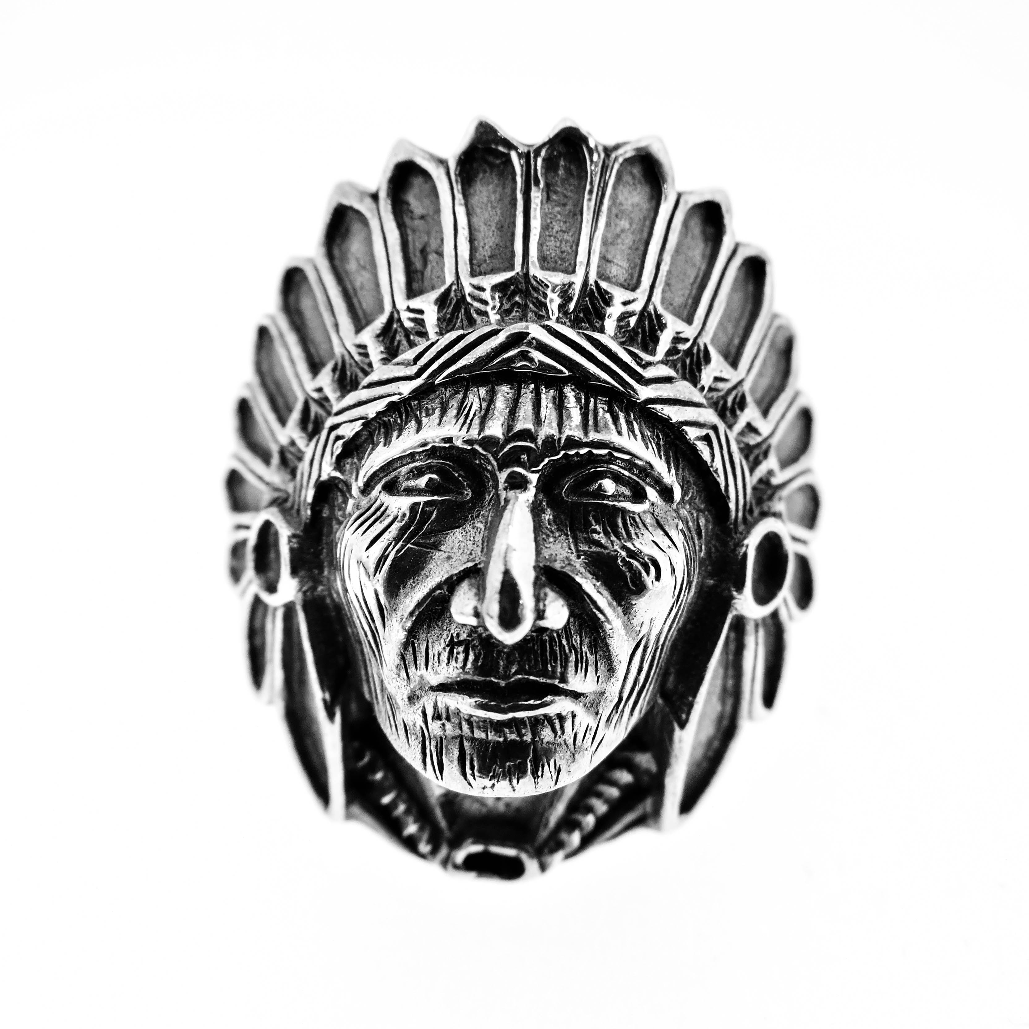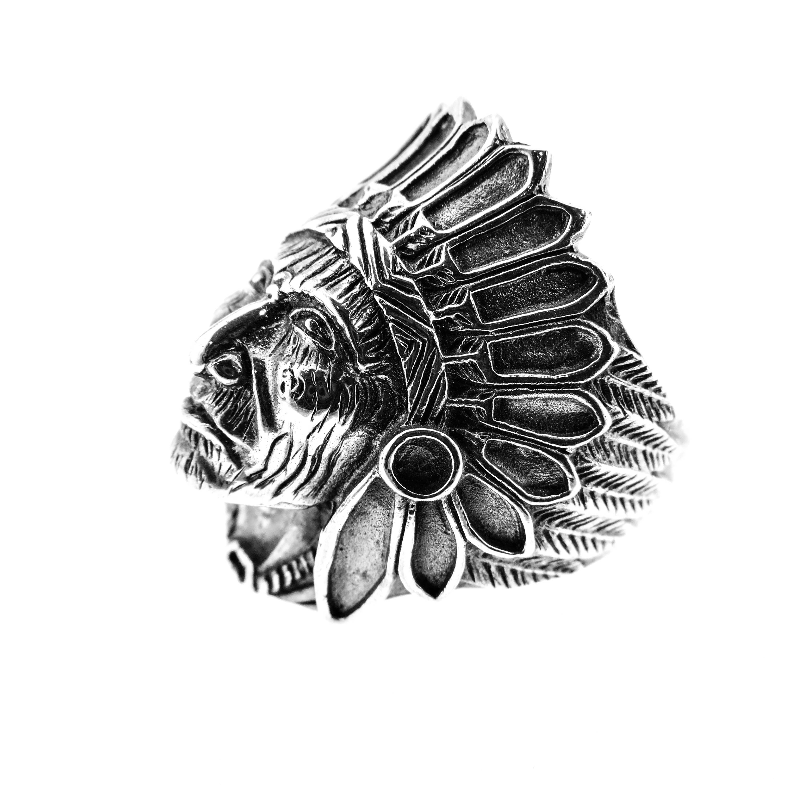 Anillo de plata diseño jefe indio, este anillo por ser exclusivo, ¡consulta los números disponibles!