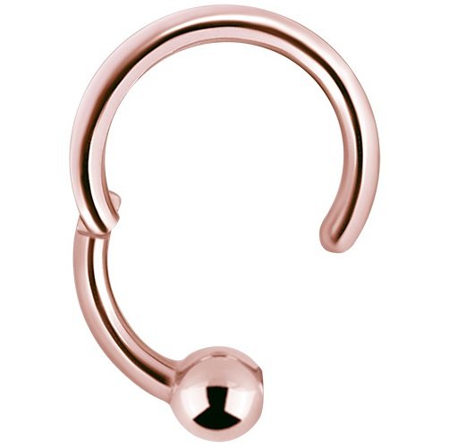 argolla bcr de acero quirúrgico con ionizado en oro rosado, con sistema de apertura clicker  a través de bisagra. el grosor de la barra es de 1.6mm. el diámetro interior es de 10mm y 12mm