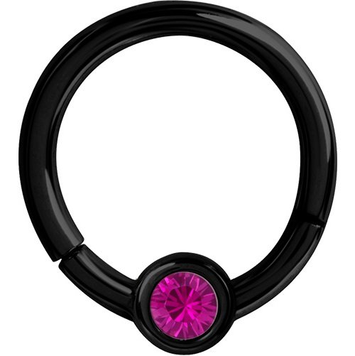 Argolla continua clicker  con apertura de bisagra de acero quirúrgico ionizado en color negro que se mantiene en el tiempo y  con un cristal swarovski de 4.0mm de diámetro. tienes varios colores de cristales para elegir. esta argolla puede ser usada en el helix o septum o smile:  medidas: 1.2x8mm.