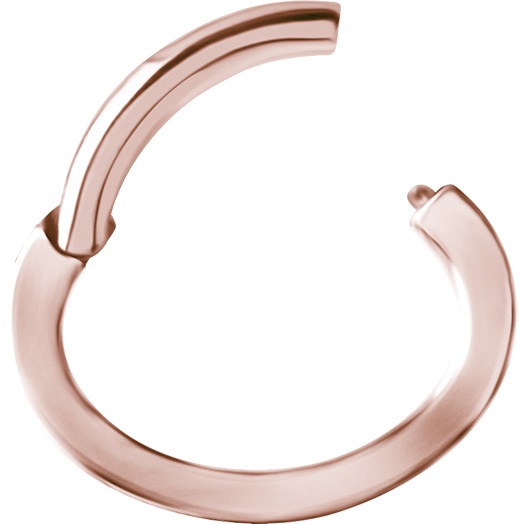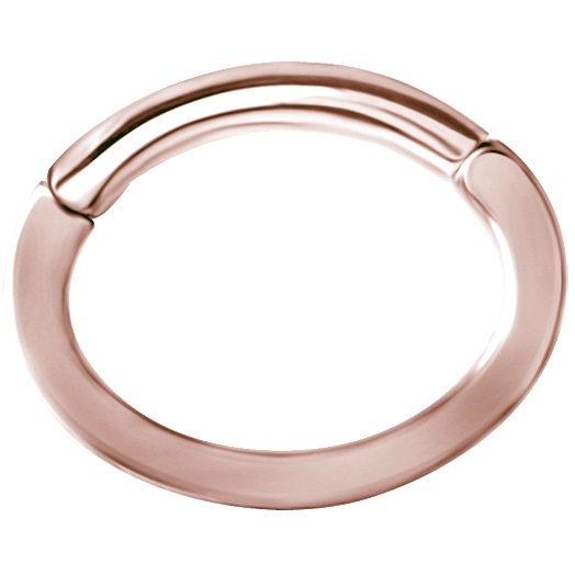 argolla clicker diseño oval de acero quirúrgico ionizado en oro rosado de perfil  cuadrado, diseñada para perforaciones del daith y rook. sus medidas son: 1.2 x 5*7mm