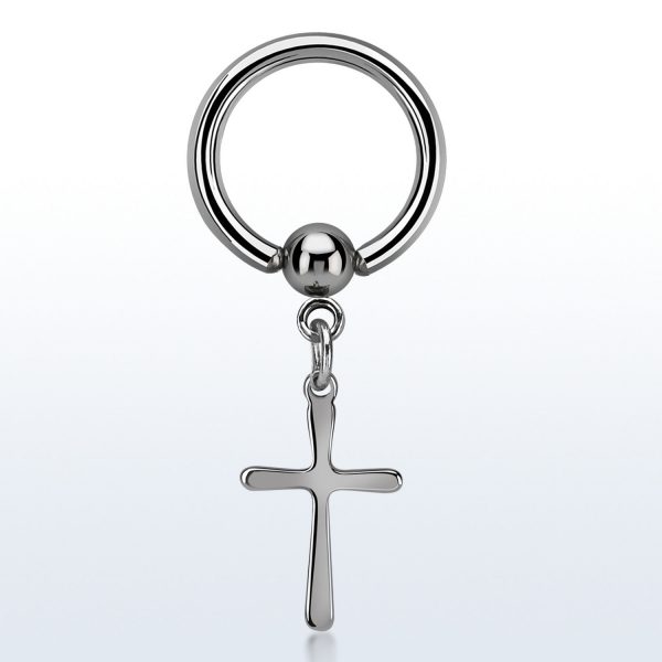 Argolla captive bcr de acero quirurgico con cruz colgante - 1.6mm