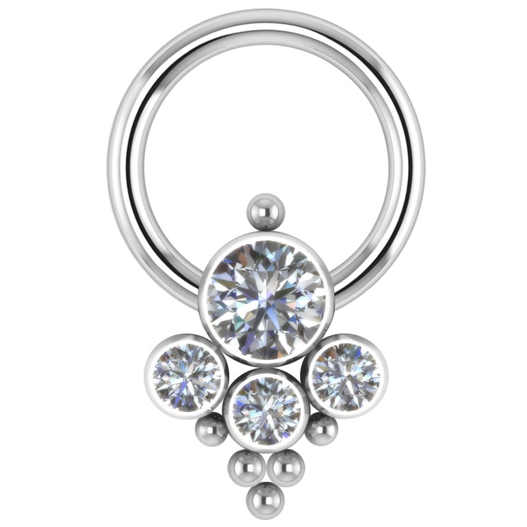 Piercings Argolla captive bcr de titanio con cuadruple cluster flat...