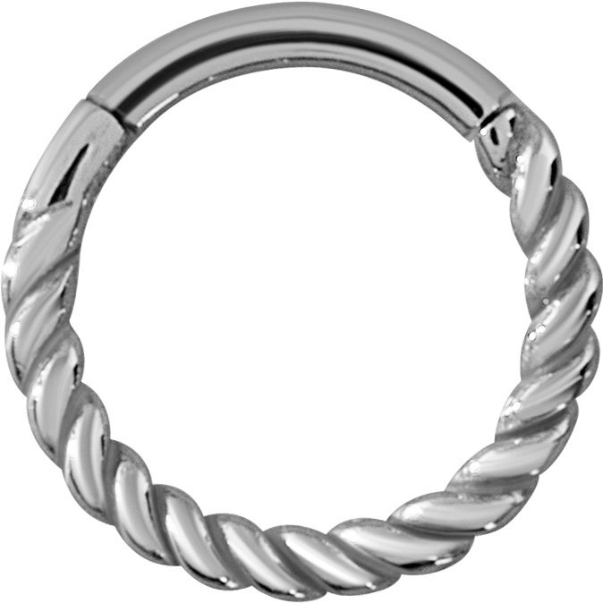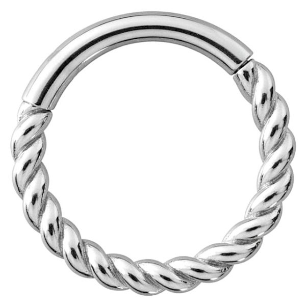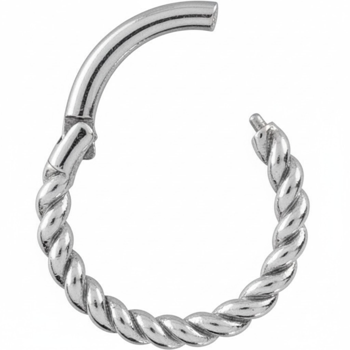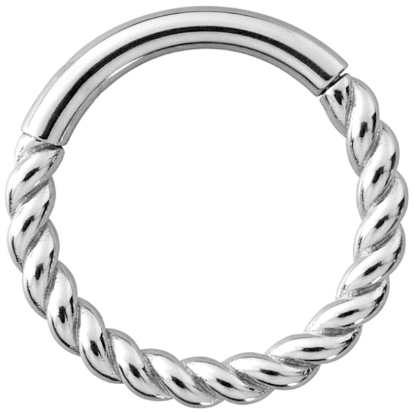 argolla continua clicker de cromo cobalto (co cr nf) y diseño de cuerda. esta argolla es muy versátil y puede ser utilizada en diferentes zonas de tu cuerpo.  nuestras argollas tienen el sistema de apertura clicker con bisagra, lo que te permite una instalación rápida, sencilla y segura.