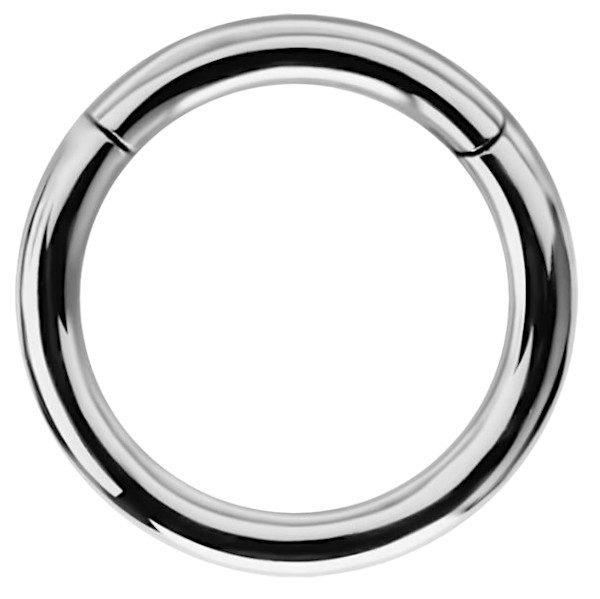 argolla continua  de titanio grado implante  astm f-136 con apertura de bisagra. el grosor de esta argolla es de 1.2mm y existen seis diámetros distintos disponibles: 7, 8, 9, 10,11, 12mm. este tipo de sistema de apertura es el más moderno y fácil de instalar.