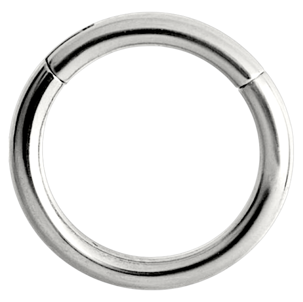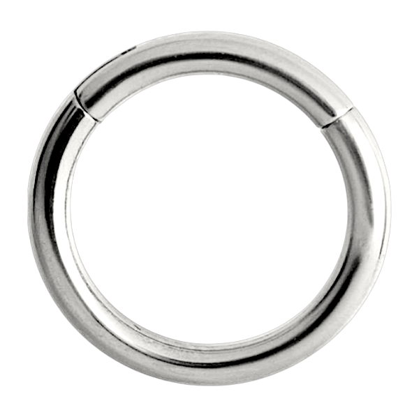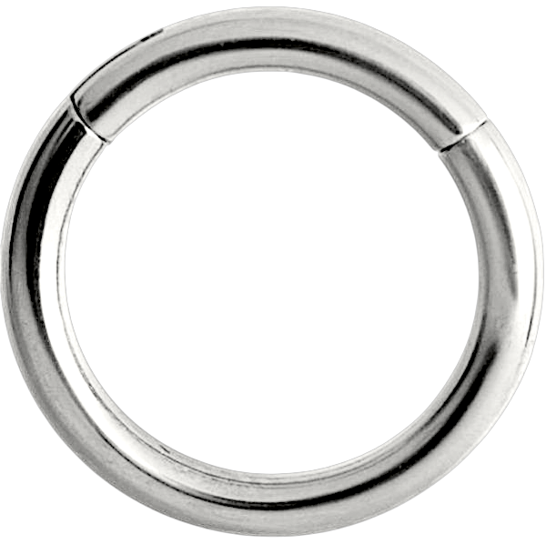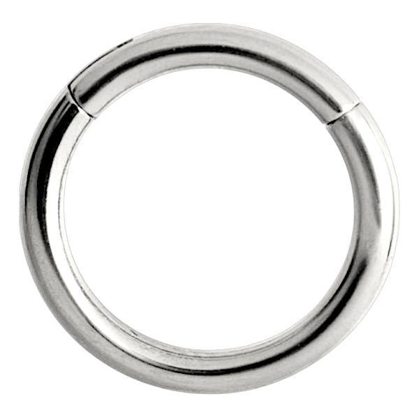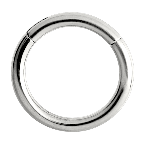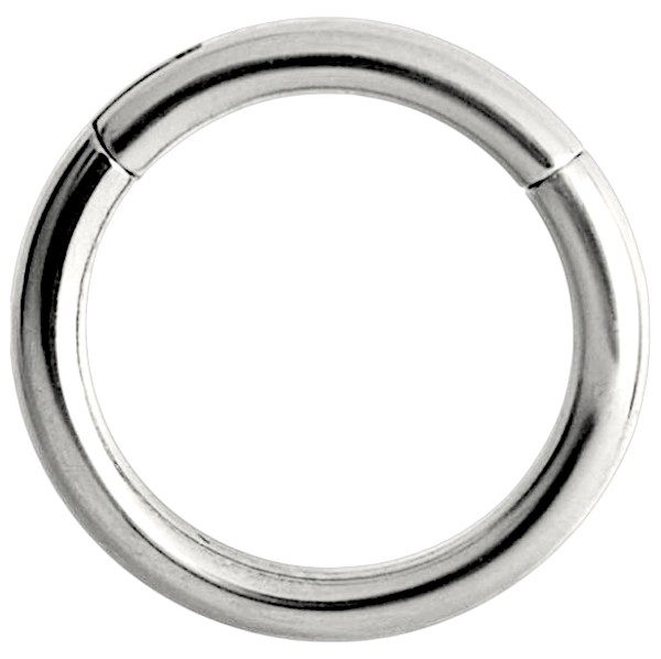 argolla continua clicker de titanio con apertura de bisagra. el grosor del piercing es de 1.6mm y existen seis diámetros distintos (6,7, 8, 9, 10, 12mm) este tipo de sistema de apertura es el más moderno y fácil en el mundo de los piercings.