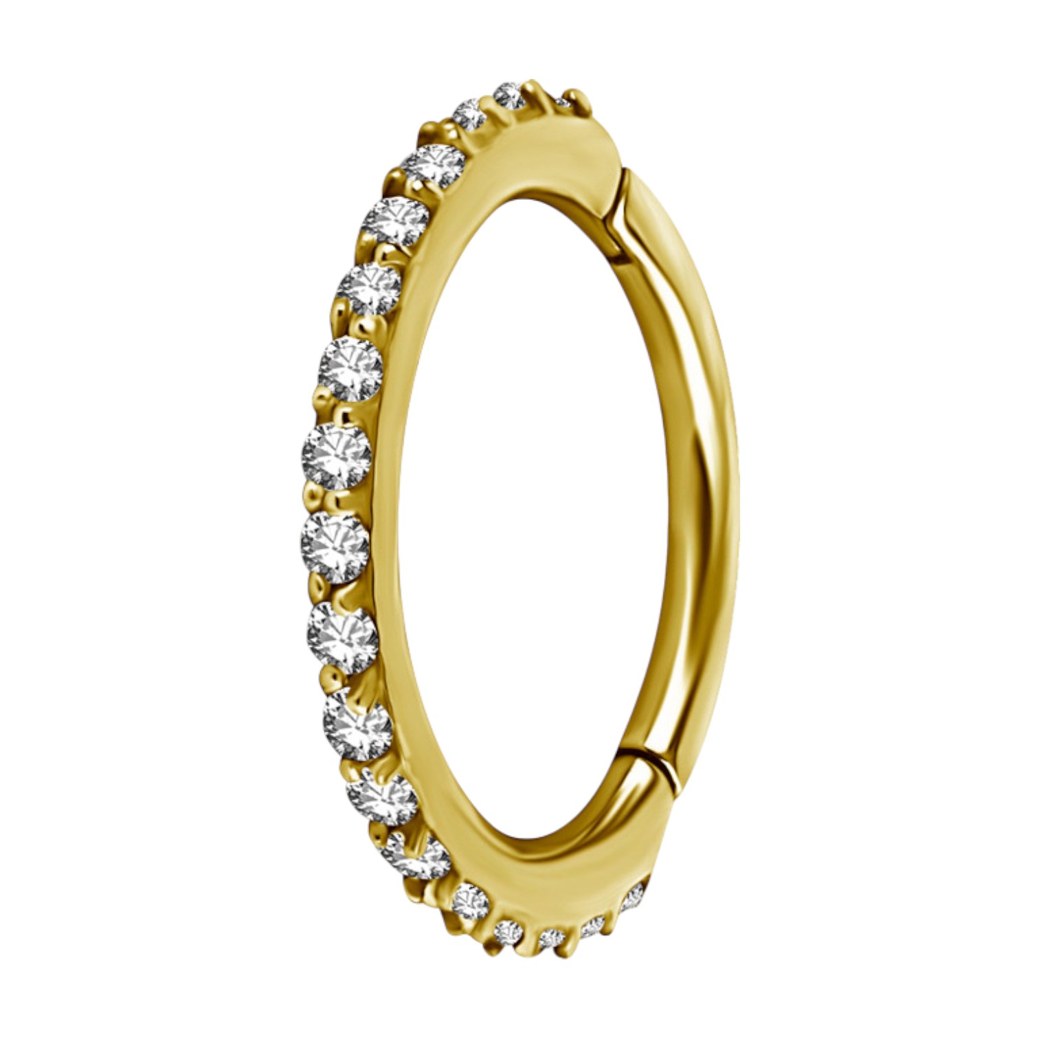 Argolla de acero dorado quirúrgico para nariz continua clicker con circones premium blancos - (0.8mm)