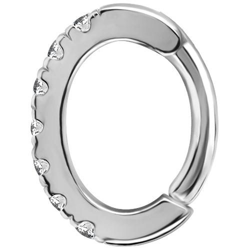 argolla de acero quirúrgico clicker oval con 7 circones premium engarzados. cada circón viene grabado con láser “premium zirconia“. esta joya por su diseño oval está especialmente diseñada para el rook del cartílago de la oreja. con su sistema de apertura clicker con bisagra te permite una instalación fácil y segura.