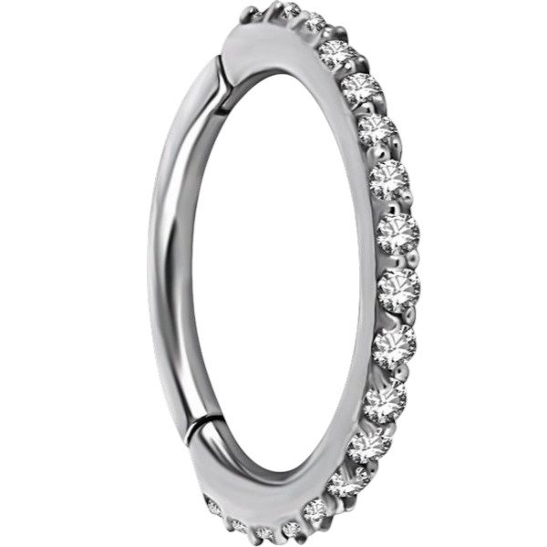 Argolla de titanio para nariz continua clicker con circones premium blancos - (1.0mm)