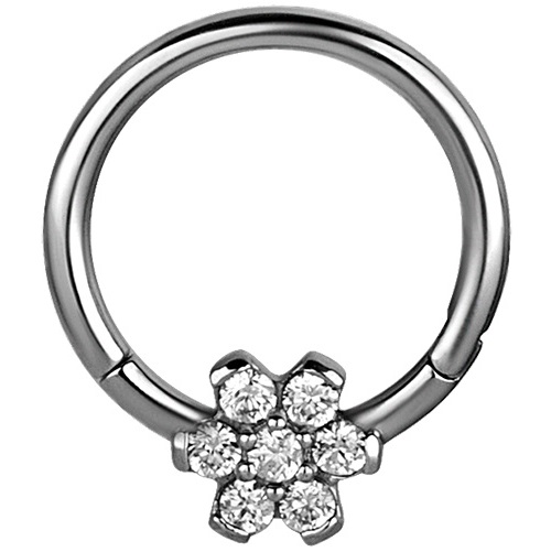 Argolla / septum clicker de acero quirúrgico diseño flor con 7 circones -1.2mm