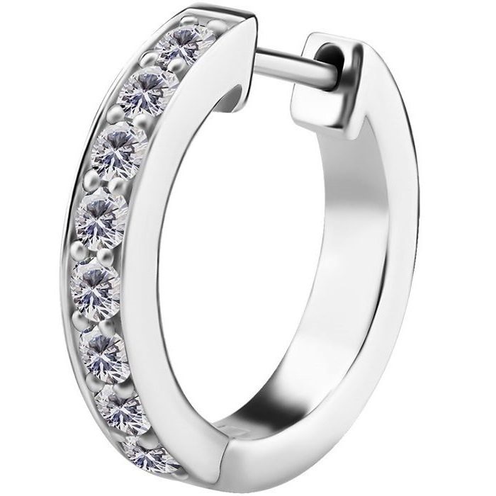 argollas de acero quirúrgico con apertura de bisagra y 8 circones swarovski engarzados. sus dimensiones son de 12mm de diámetro interior y 16mm de diámetro exterior. esta argolla por sus  dimensiones es ideal para ser usadas en el conch o lóbulo de la oreja.