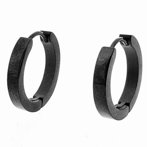 Joyas Argollas de acero quirúrgico negro brillante cuadrado -18mm
