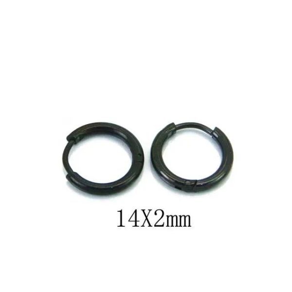 argollas para la oreja de acero quirúrgico negro. tiene un ionizado con un color negro que se mantiene en el tiempo. el diámetro interno de la argolla es 10mm y el externo es 14mm. el ancho de la argolla es de 2.0mm y puedes elegir entre llevarte el par o una sola.