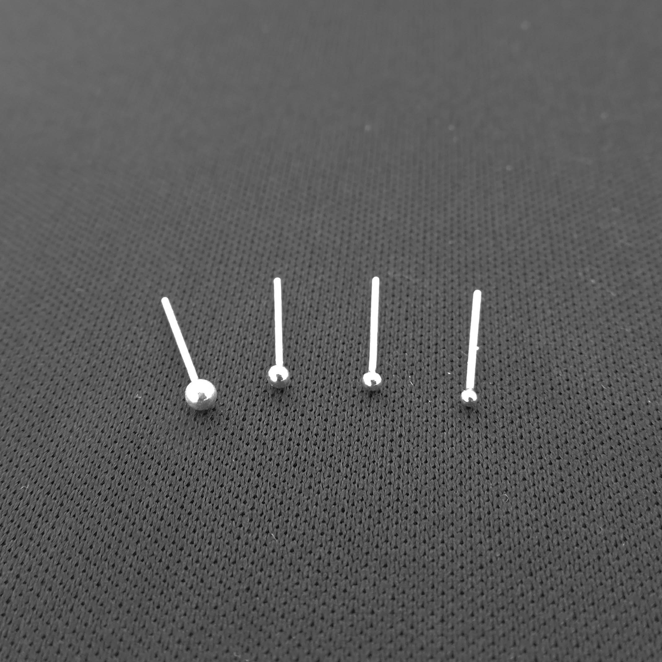 medidas: 0.5mm (grosor) x 9mm (largo) y  bolita de 1.0, 1.2, 1.5, 2.0mm (diámetro )