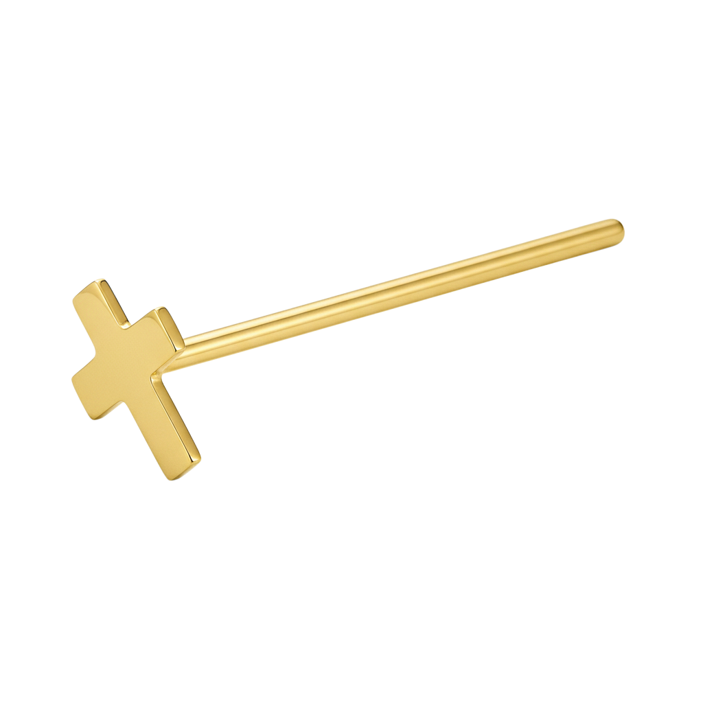 Joyas Aro nariz de plata dorada recto diseño cruz - 0.5mm