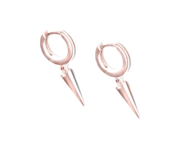 aros argolla de plata diseño cono colgante rosado. tiene un ionizado de oro rosado. esta argolla está diseñada para ser usada en el lóbulo de la oreja.