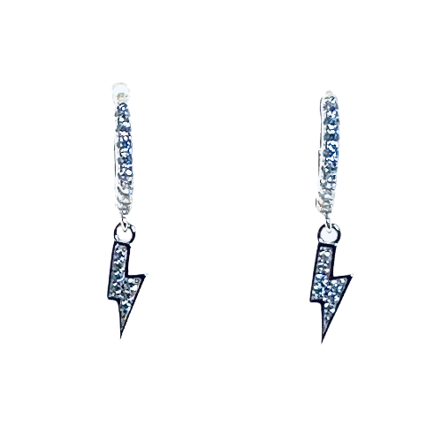 aros argolla de plata diseño rayo colgante. tiene circones engarzado en la argolla y en el rayo. esta argolla está diseñada para ser usada en el lóbulo de la oreja.