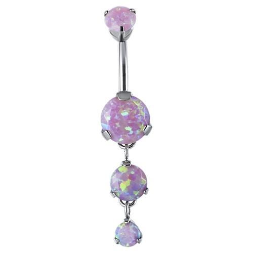 Banana de acero quirurgico colgante con 4 ópalos rosados. los 4 ópalos son de 4, 5, 6 y 8mm de diámetro.