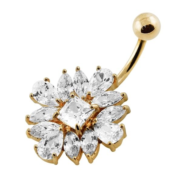 Banana de ombligo de acero quirúrgico dorado diseño square full mix 13 circones blancos