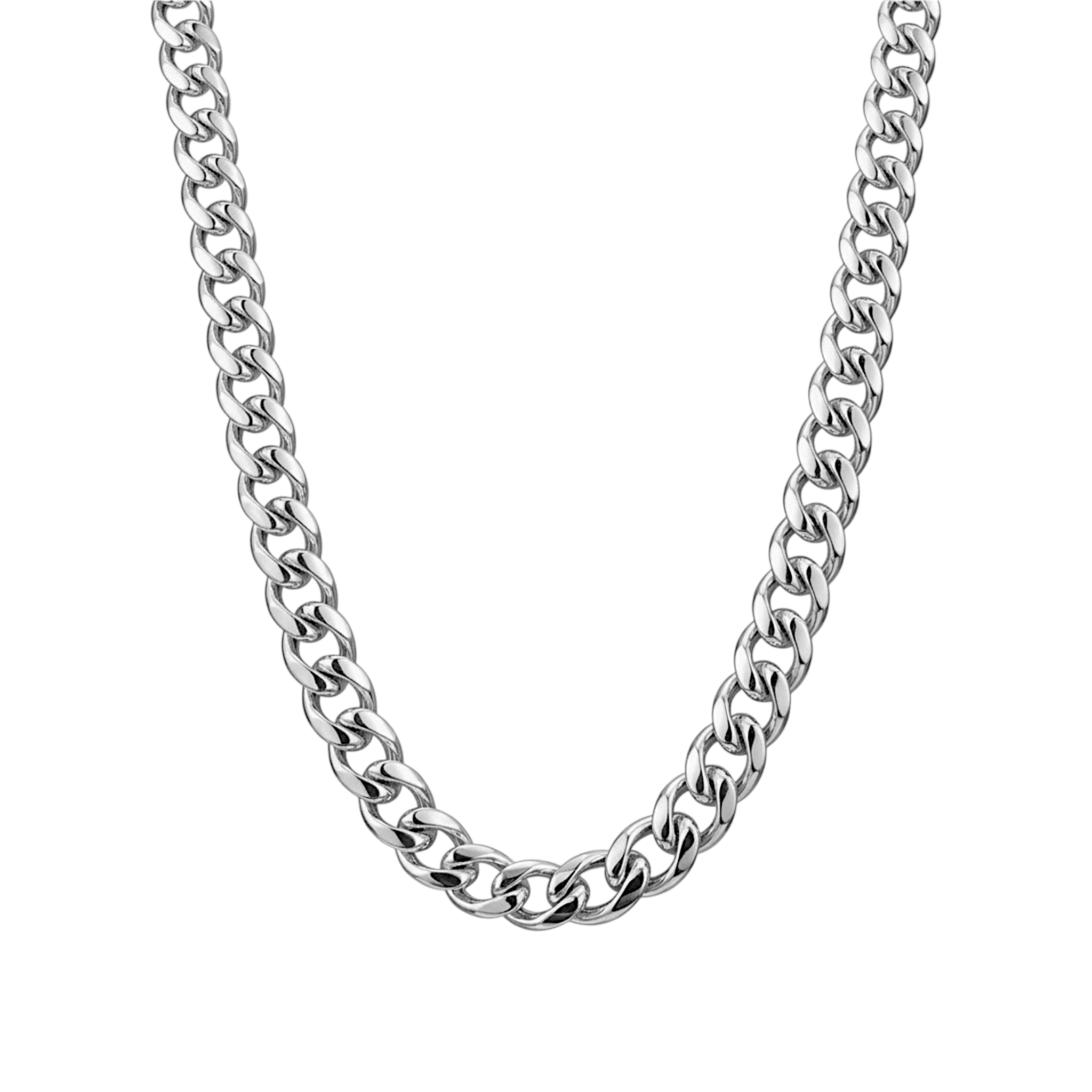 cadena de acero quirurgico diseño “diamond cut”  con eslabón  plano brillante de 6.0mm. la cadena tiene un largo de 60 cm.