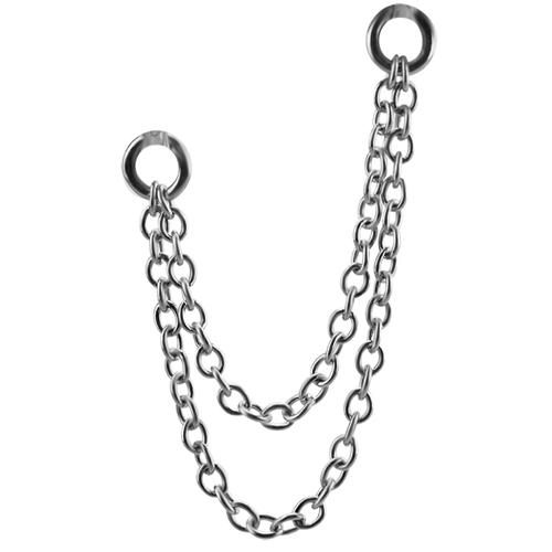 Cadena de acero quirurgico doble  de 30mm y 33mm de largo. está diseñada para conectar 2 argollas clicker de hasta 1.6 de grosor.