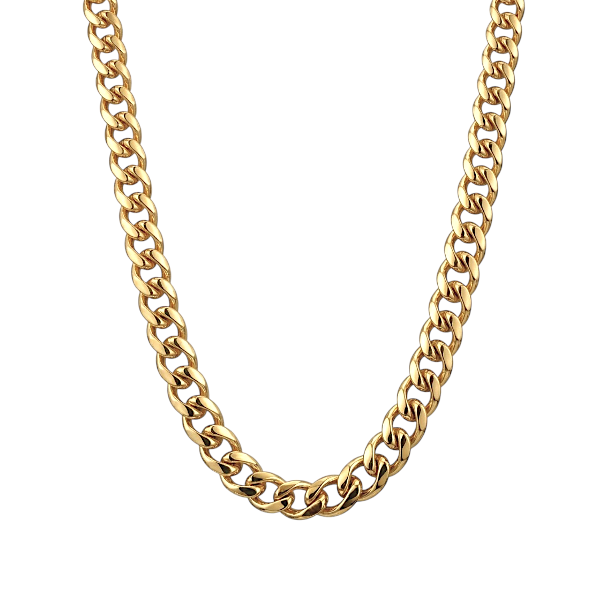 cadena de acero quirurgico dorado diseño “diamond cut”  con eslabón  plano brillante de 6.0mm. tiene un ionizado de oro de 24k.  la cadena tiene un largo de 60 cm.