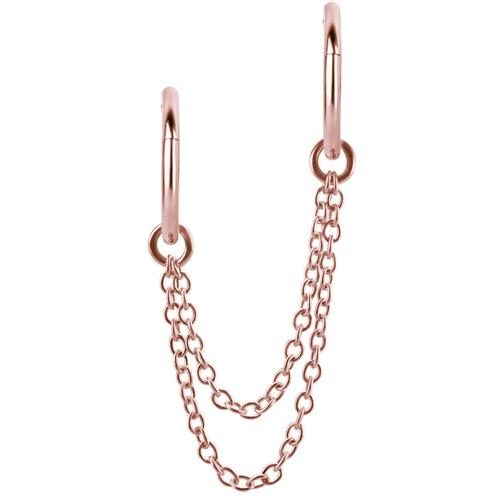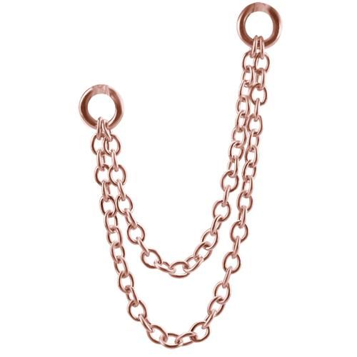 Cadena de acero quirúrgico rosado doble  de 30mm y 33mm de largo. tiene un ionizado de oro rosado que se mantiene en el tiempo. está diseñada para conectar 2 argollas clicker de hasta 1.6 de grosor.