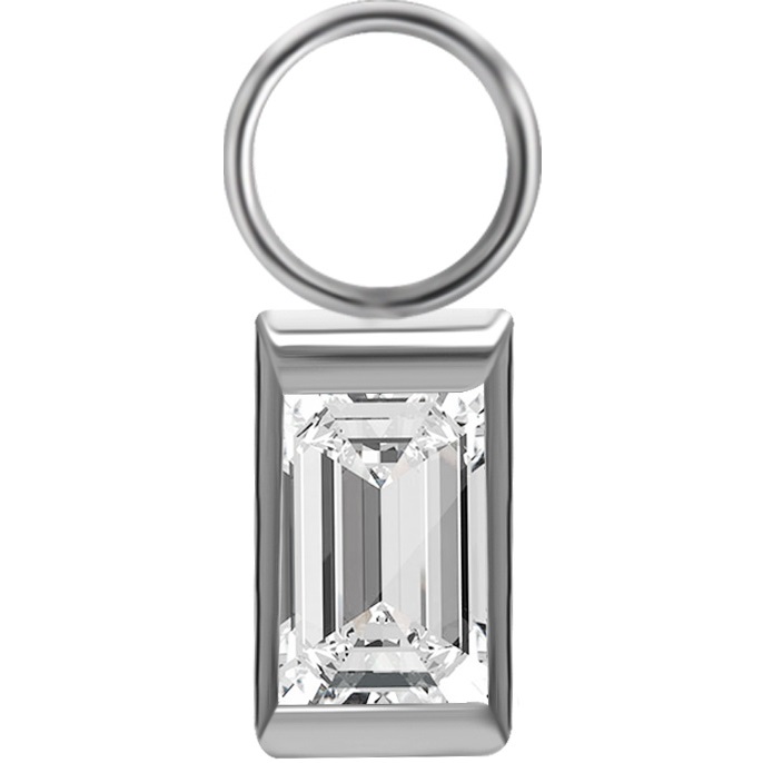 Accesorio charm de acero quirúrgico de diseño baguette para ser usado en argollas continuas clicker. sus dimensiones son de 4.0mm x 2.5mm. (este accesorio sirve para ser usado en argollas de hasta 2mm de grosor).