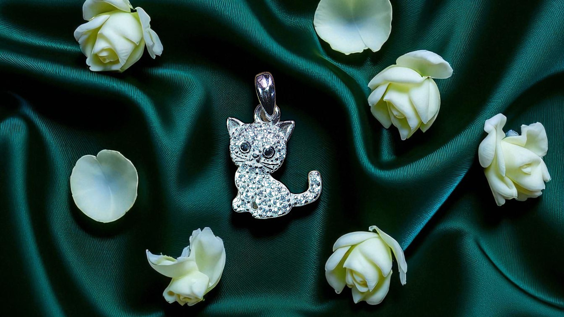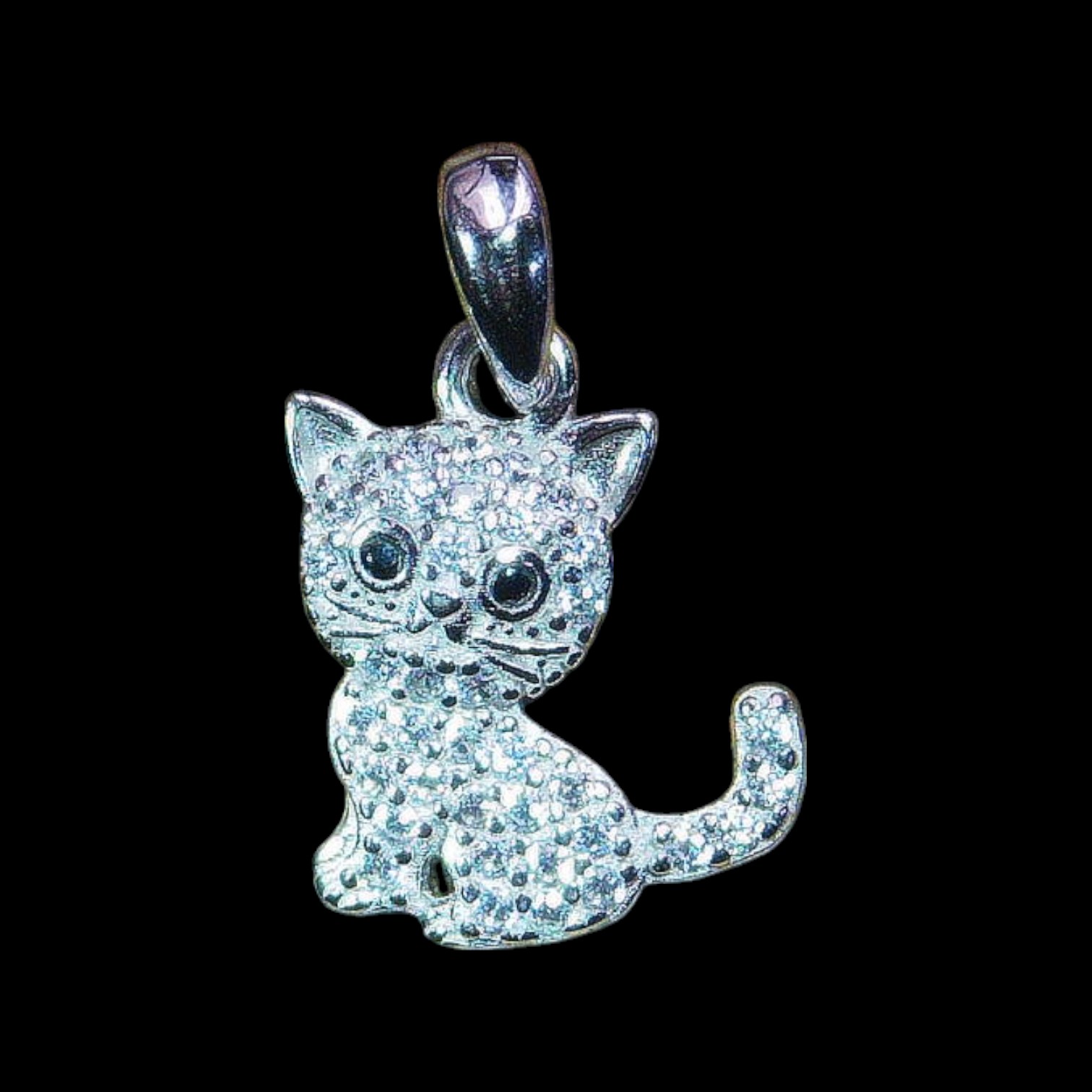 colgante de plata  diseño gatito de 11x11mm  con multi circones engarzados color blanco.