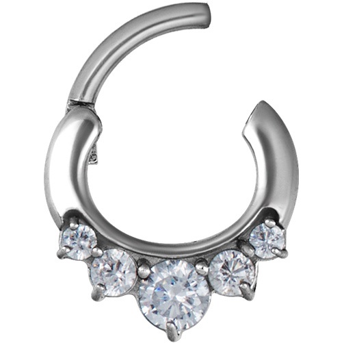 daith  de acero quirúrgico con 5 circones premium engarzados color blanco. todos nuestros daith tienen el sistema de apertura clicker con bisagra, lo que te permite una instalación rápida y segura.