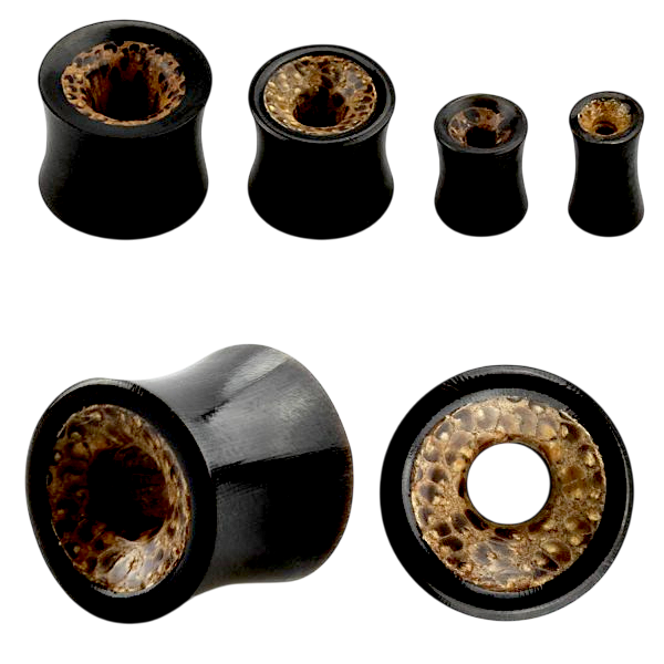 Expansión de cuerno con madera de coco “coconut wood”. la parte externa es de cuerno negro, la parte interior está hecha con madera.  medidas desde 4.0mm hasta 20mm.