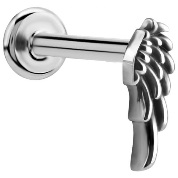 helix de acero quirurgico diseño ala. el sistema de apertura es a través de “rosca interna” sus medidas son de 1.2mm de grosor, largo del eje de  7.0mm y 8.0mm. el diseño del ala es de 3.8x 11 mm. esta joya es ideal para el hélix, lóbulo o conch de la oreja.