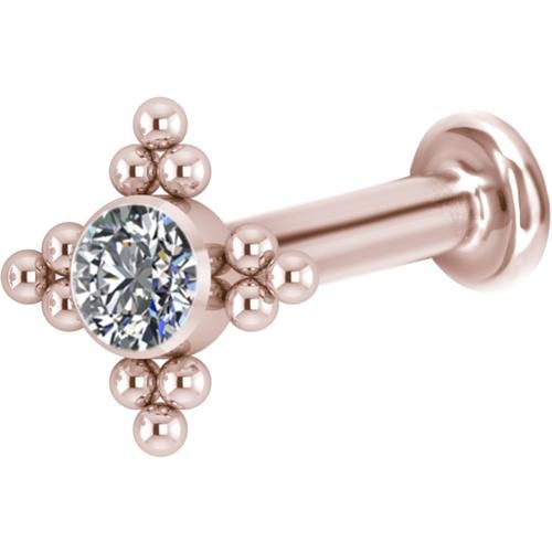 Helix / tragus de titanio rosado diseño polaris con microbolitas y cristal swarovski de 3.0mm (rosca interna)-1.2mm