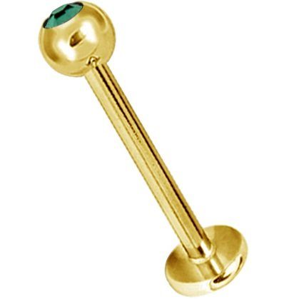 labret de acero quirúrgico dorado diseño bolita de 3mm y 4mm con cristal swarovski. distintos colores. tiene un ionizado de oro de 24 kilates. la barra es de 1.2mm de grosor y los largos de barra disponible son: 5, 6, 7, 8,  9, 10 y 12mm.
