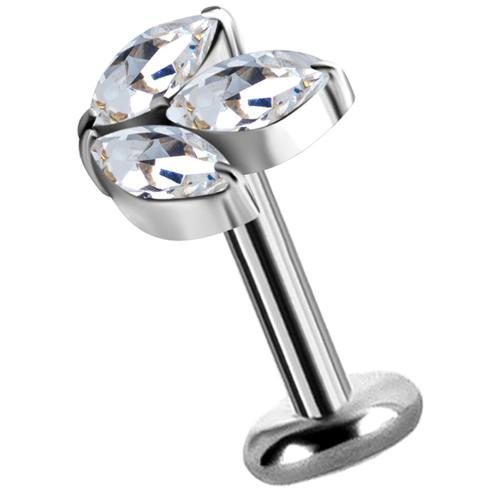 Labret/ helix de cromo cobalto diseño cluster marquise con 3 circones premium (push-pin)-1.2mm