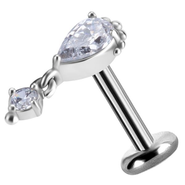 Labret / helix de cromo cobalto y circon diseño gota dangling (int)-1.2mm