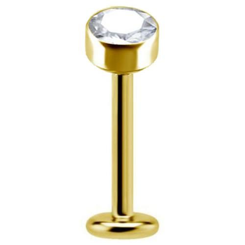 Labret titanio dorado con top de oro 18k circón 4mm bisel – piercing elegante chile