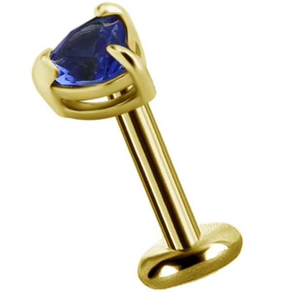 Labret titanio dorado con top oro 18k diseño corazón con topacio azul – piercing elegante chile