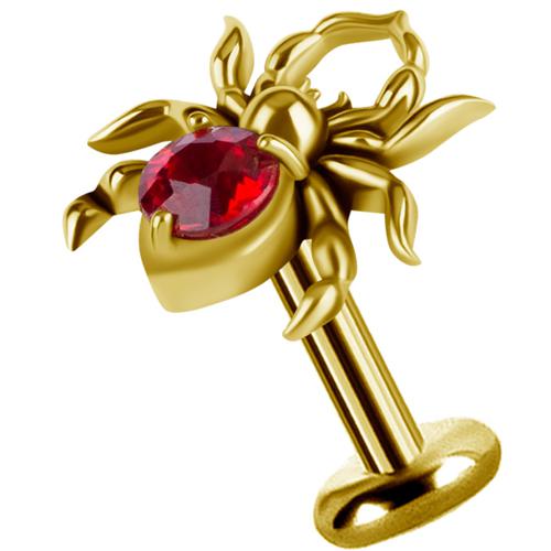 Piercings Labret titanio dorado con top de oro 18k araña zafiro...