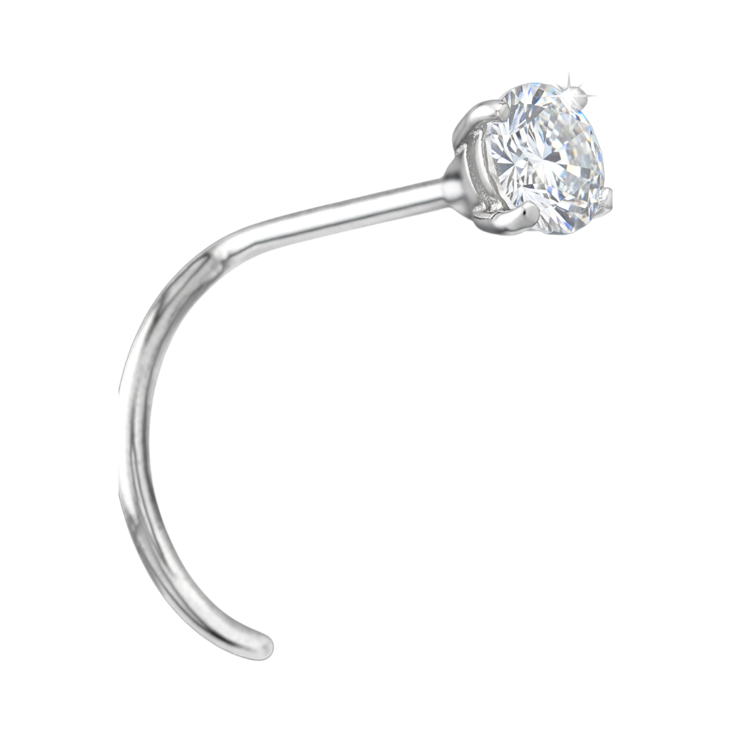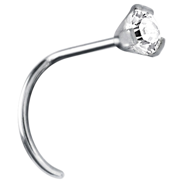 nostril de acero quirúrgico con un circon swarovski  color blanco engarzado. el grosor de la joya es de 0.8mm y el tamaño del circón es de 2.0mm.