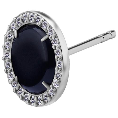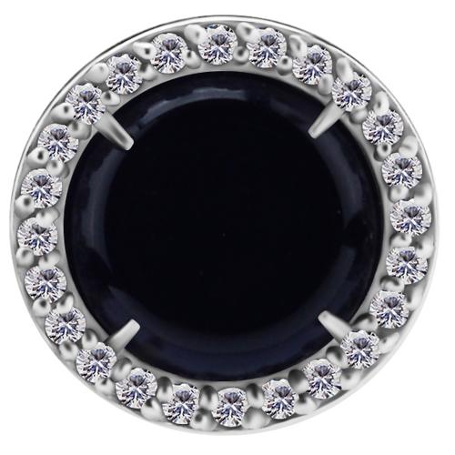 par de aros de acero quirurgico diseño disco de 11 mm de diámetro con 1 ágata negra y 24 circones blancos engarzados. tiene el cierre tradicional de mariposa regulable en 2 posiciones a  6.5 y 7.5mm.