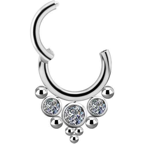 Septum clicker de titanio cluster con 3 circones premium swarovski varias medidas